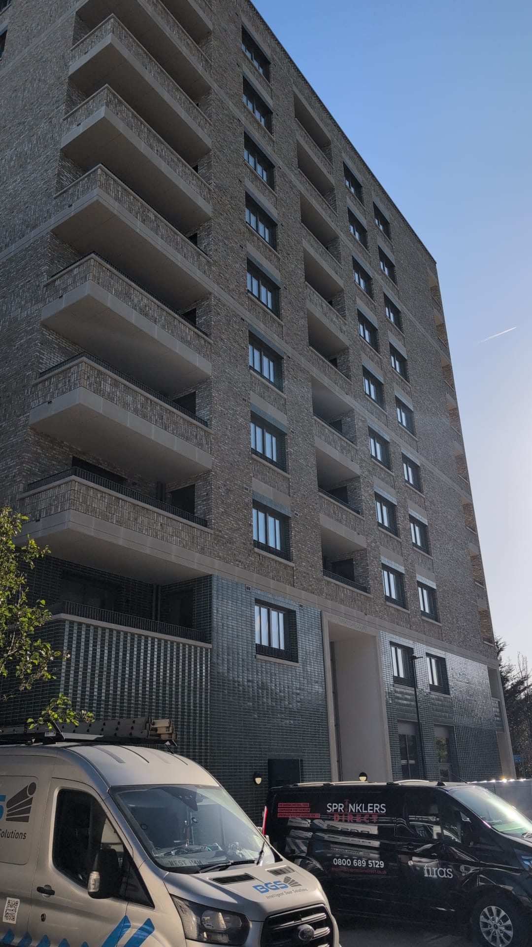 This project features the delivery of 272 new homes across five blocks and ten riser cores. The development includes 86 valves and 3,236 sprinkler heads, all served by a dedicated sprinkler pump and tank designed to meet CAT 4 criteria. The entire system is fed from a standalone, centralised pump and tank, demonstrating our team’s meticulous planning, commitment to value engineering, safety, and quality.