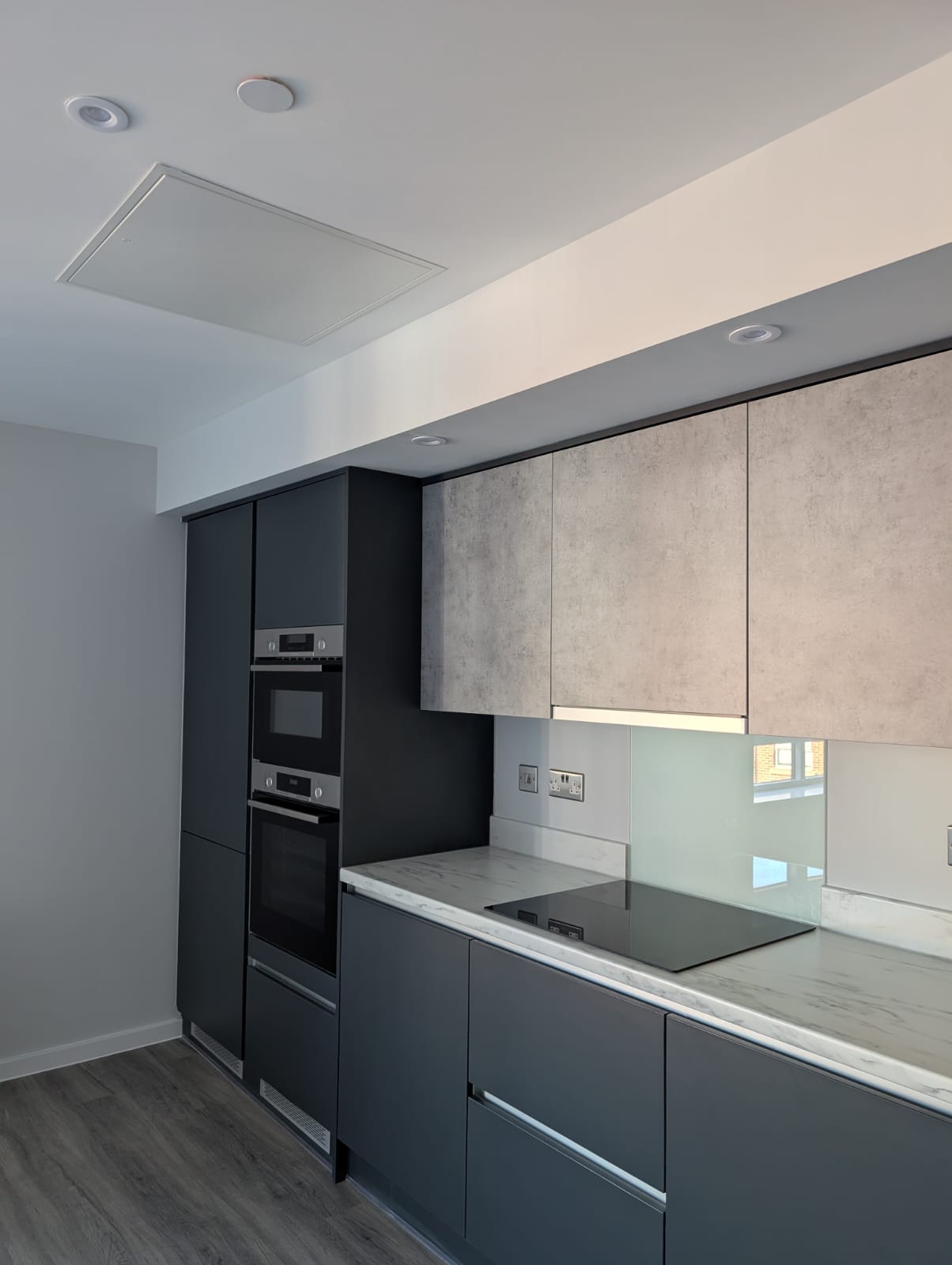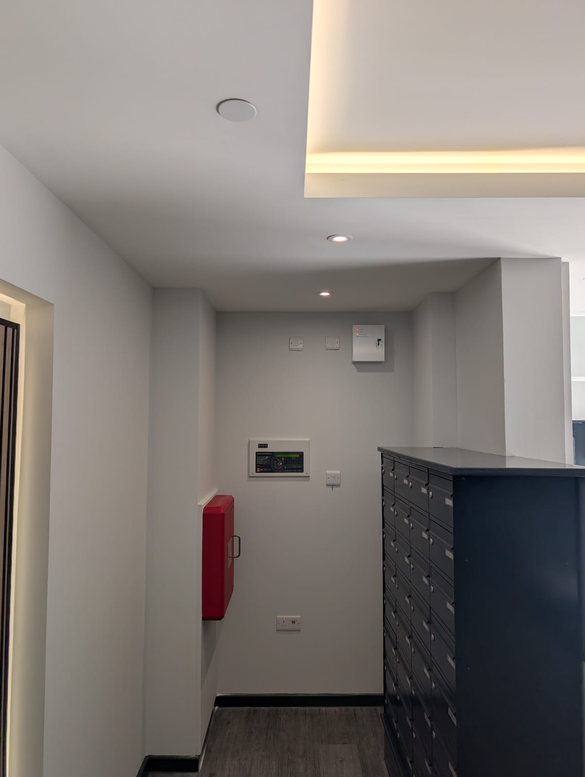 The project features a Category 3 sprinkler system that provides full coverage for all residential flats, ancillary rooms and shared common areas. With a dedicated sprinkler alarm panel. Designed to meet the latest fire safety standards, this system offers rapid and reliable response in the event of a fire. It incorporates an Ordinary Hazard sprinkler installation in the undercroft car park, extending protection to this critical area. Additional measures and close consultation with the Authority Having Jurisdiction (AHJ) have been implemented to ensure compliance and system robustness.