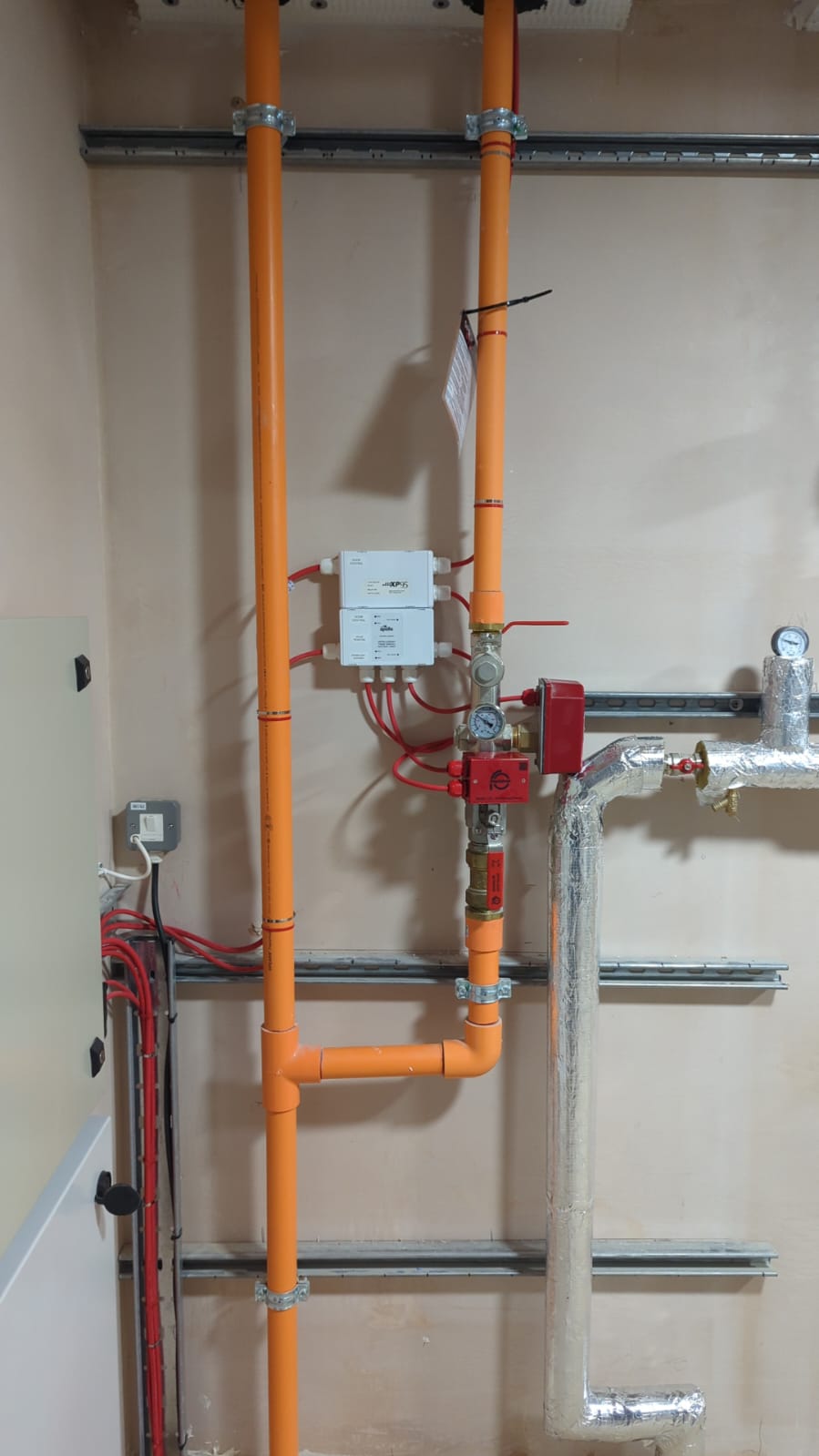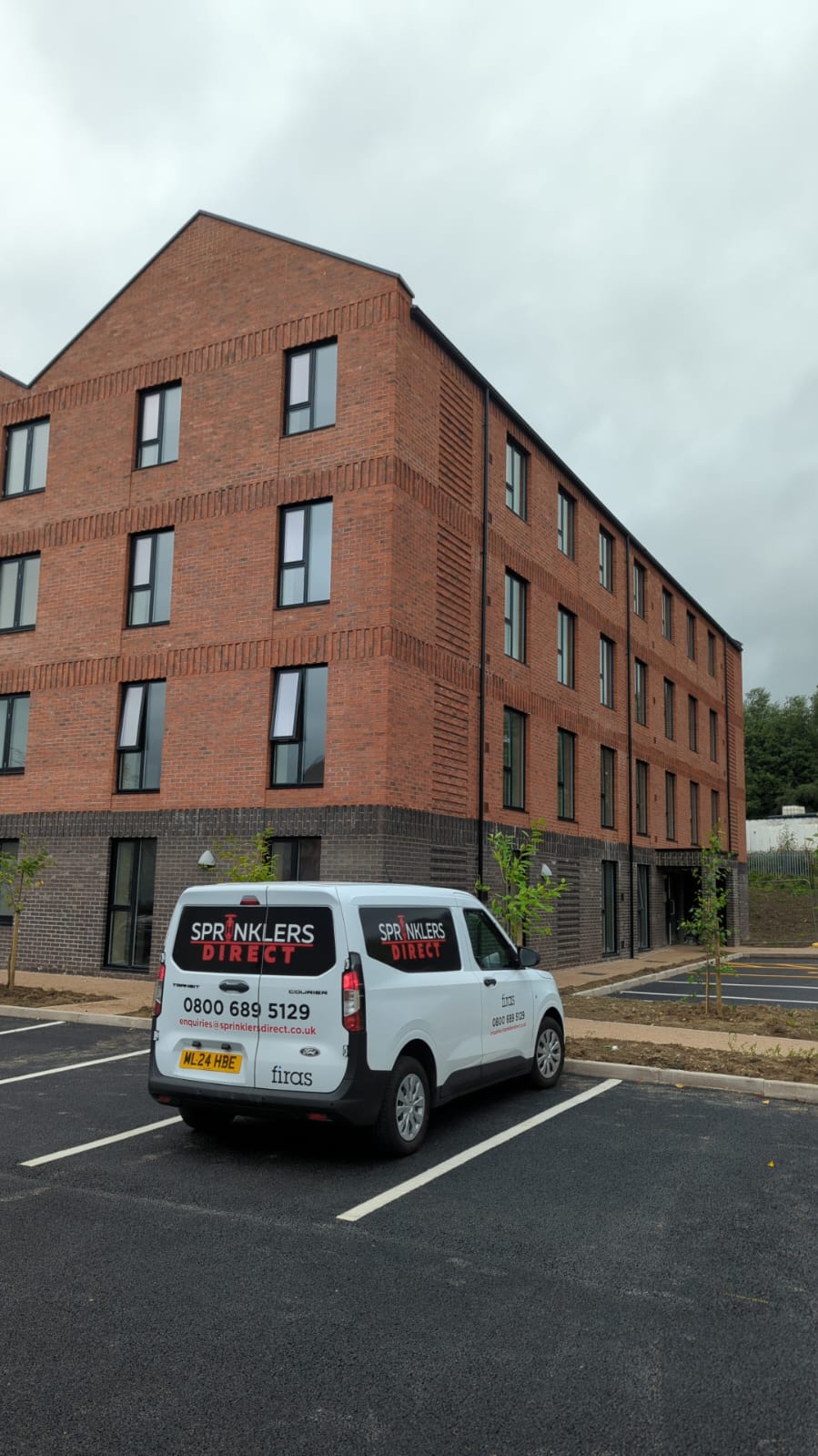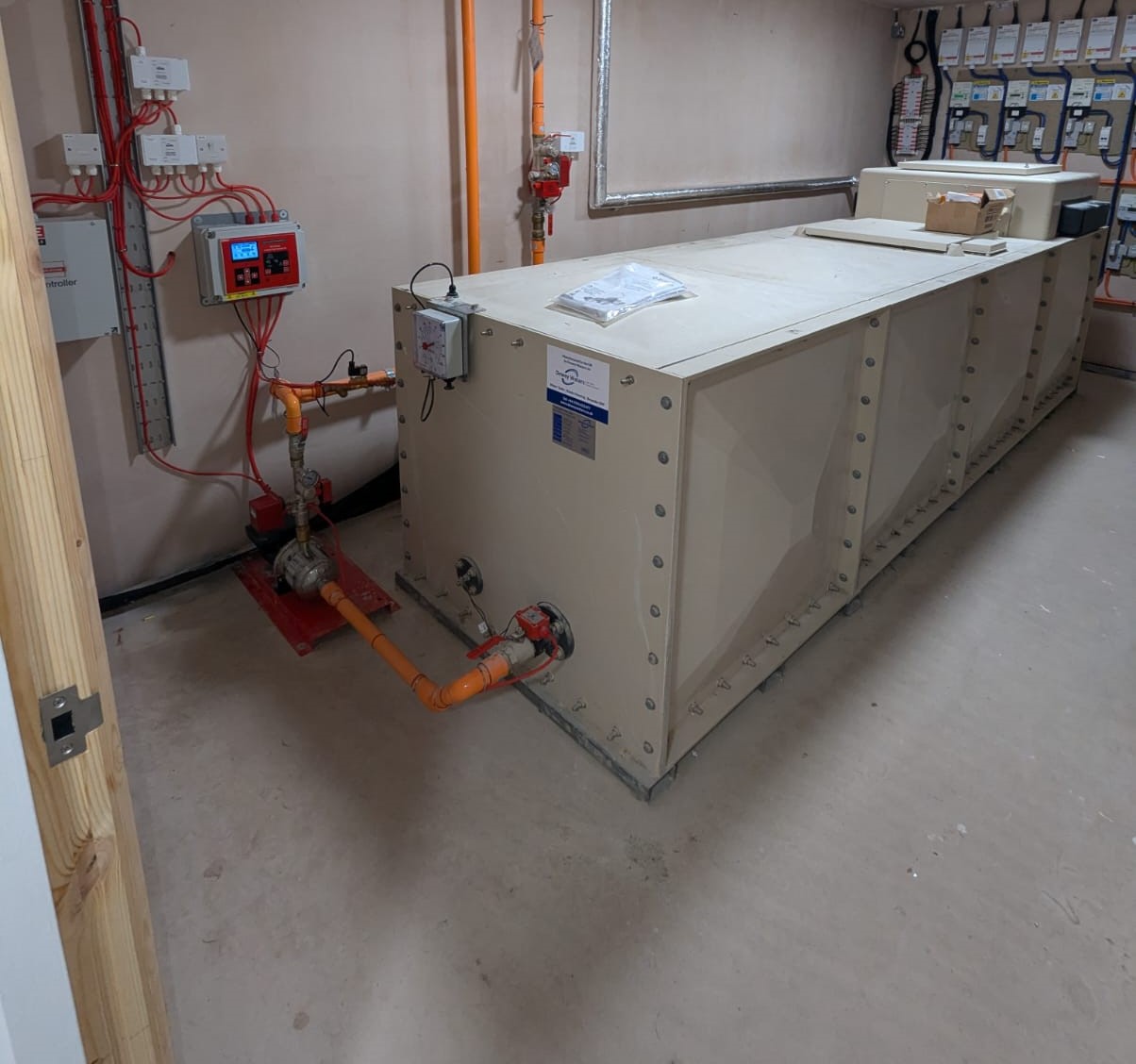 A dedicated fire pump and storage tank was selected to provide reliable, independent water supply, with the pump sized to meet the system’s peak demand. The system was designed to distribute 250 sprinkler heads strategically across all flats.